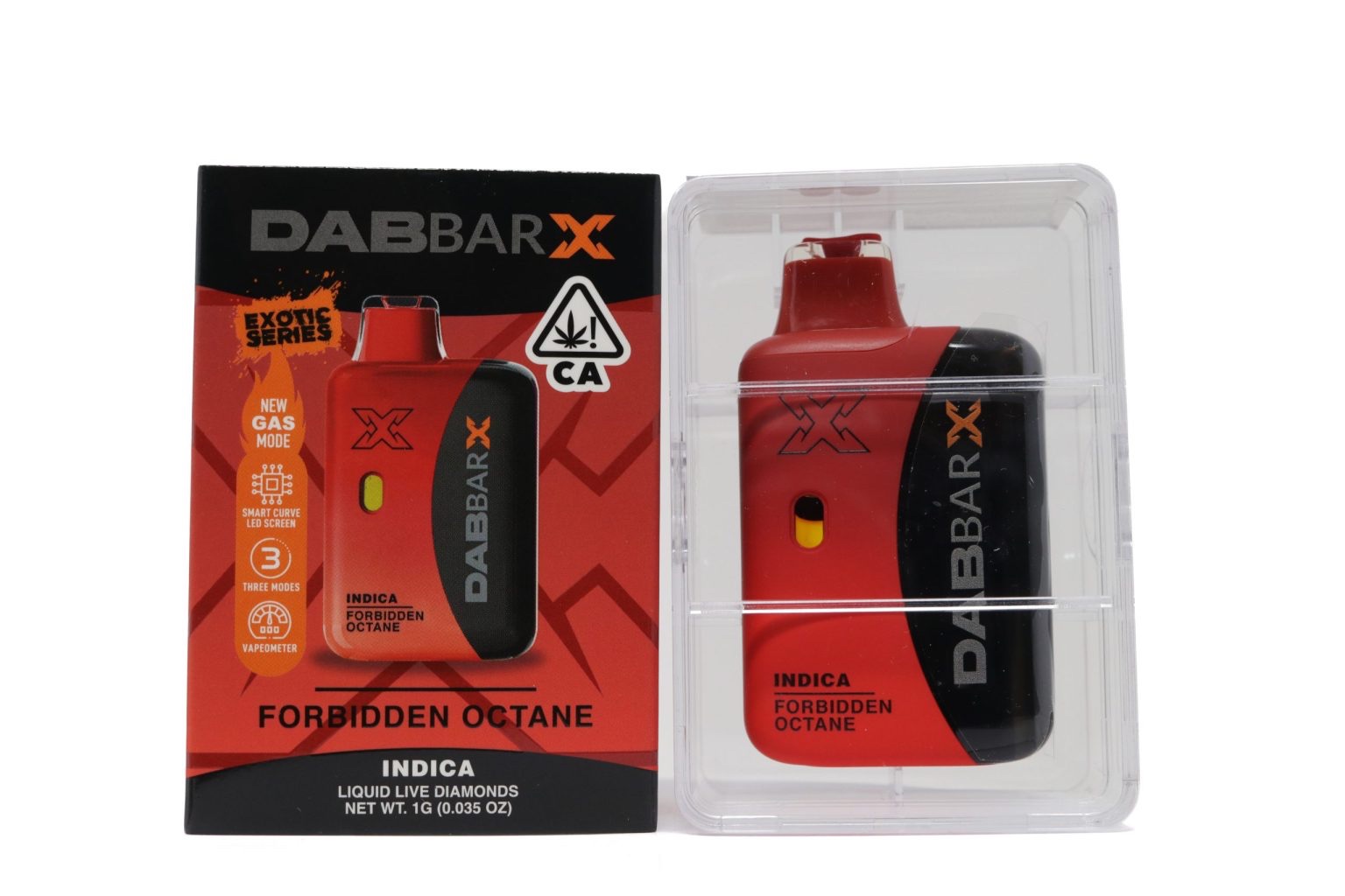 Forbidden Octane is a potent indica available in Dab Bar X’s premium disposable, delivering a heavy-hitting, full-body relaxation experience. Known for its rich, earthy flavor profile and powerful sedating effects, Forbidden Octane is perfect for unwinding after a long day or sinking into deep, restorative calm.