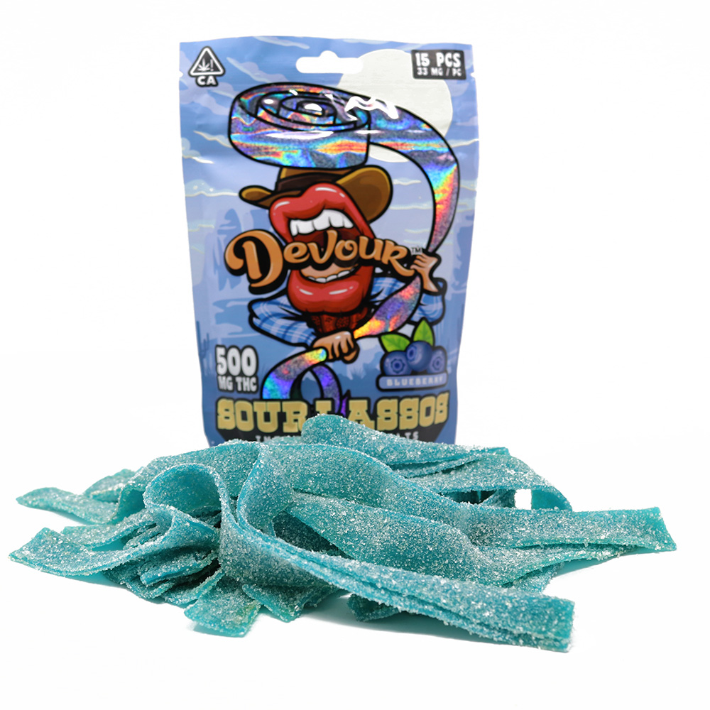 Effects: The effects of Devour Candy’s 500mg Sour Lassos can be intense and long-lasting due to their high THC concentration. Consumers can expect to experience strong psychoactive effects, including euphoria, relaxation, and altered perception. These effects may vary depending on individual tolerance, metabolism, and other factors.
