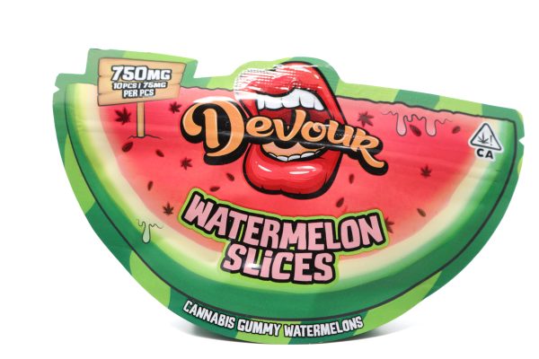 Enjoy a refreshing twist on classic edibles with Devour’s Watermelon Slices. Bursting with juicy watermelon flavor and a sour sugar coating, these gummies are as delicious as they are potent. With a total of 750mg of THC per bag, these edibles are made for seasoned consumers seeking strong, long-lasting effects.