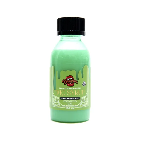 Each bottle is packed with 1000mg of premium THC, perfect for mixing into drinks or sipping straight for a fast-acting, long-lasting high. Whether you’re looking to unwind, vibe out, or elevate your mood, Devour’s Strawberry Kiwi syrup hits the spot.