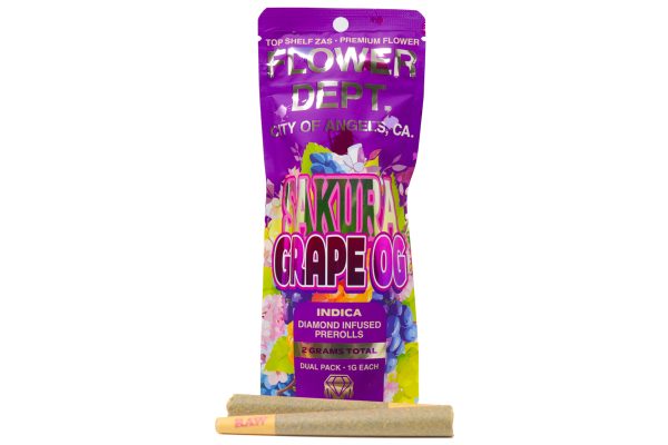 Unwind in style with Flower Dept Diamond Infused Prerolls (2g) – Sakura Grape OG, a premium indica preroll crafted for deep relaxation and rich flavor. Each preroll blends top-shelf Sakura Grape OG flower with potent THCa diamonds, creating a smooth, slow-burning experience that delivers both flavor and power in perfect harmony.