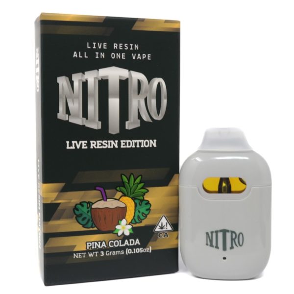 Escape to paradise with the Nitro Live Resin Disposable in Pina Colada—a tropical blend of creamy coconut and tangy pineapple that delivers the ultimate vacation vibes. Infused with 3 grams of premium live resin THC, this sleek, rechargeable device offers smooth, consistent vapor and potent effects with every puff.