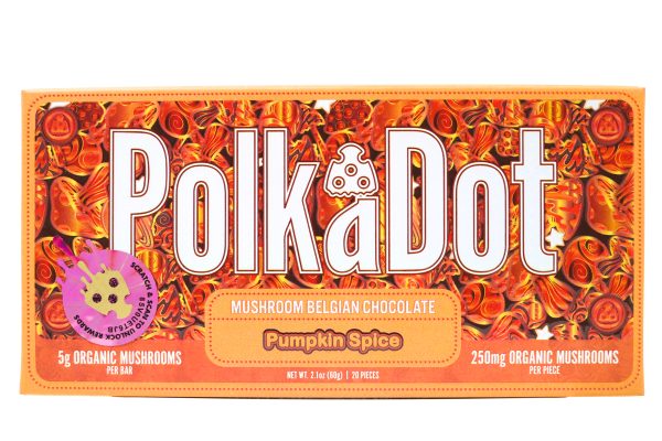 Celebrate the cozy flavors of autumn with Polka Dots Magic Chocolate (5g) – Pumpkin Spice. This rich milk chocolate bar is infused with 5 grams of premium psilocybin mushrooms and layered with warm pumpkin, cinnamon, nutmeg, and clove spices, delivering a comforting yet potent psychedelic experience.